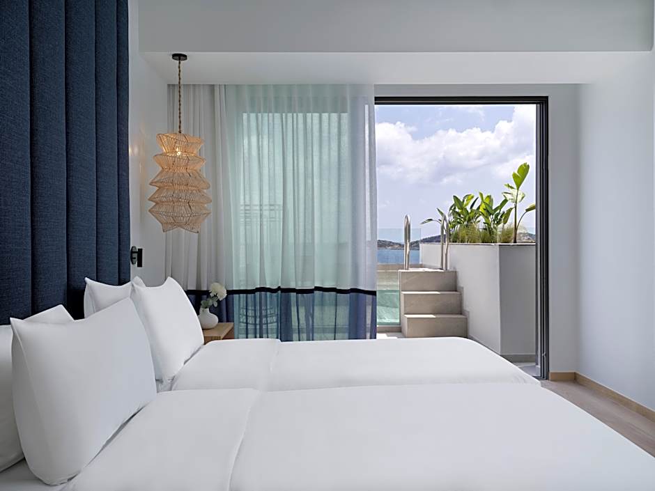 The spacious suite offers air conditioning, a mini-bar, a balcony with sea views as well as a private bathroom boasting a walk-in shower. The unit has 2 beds.